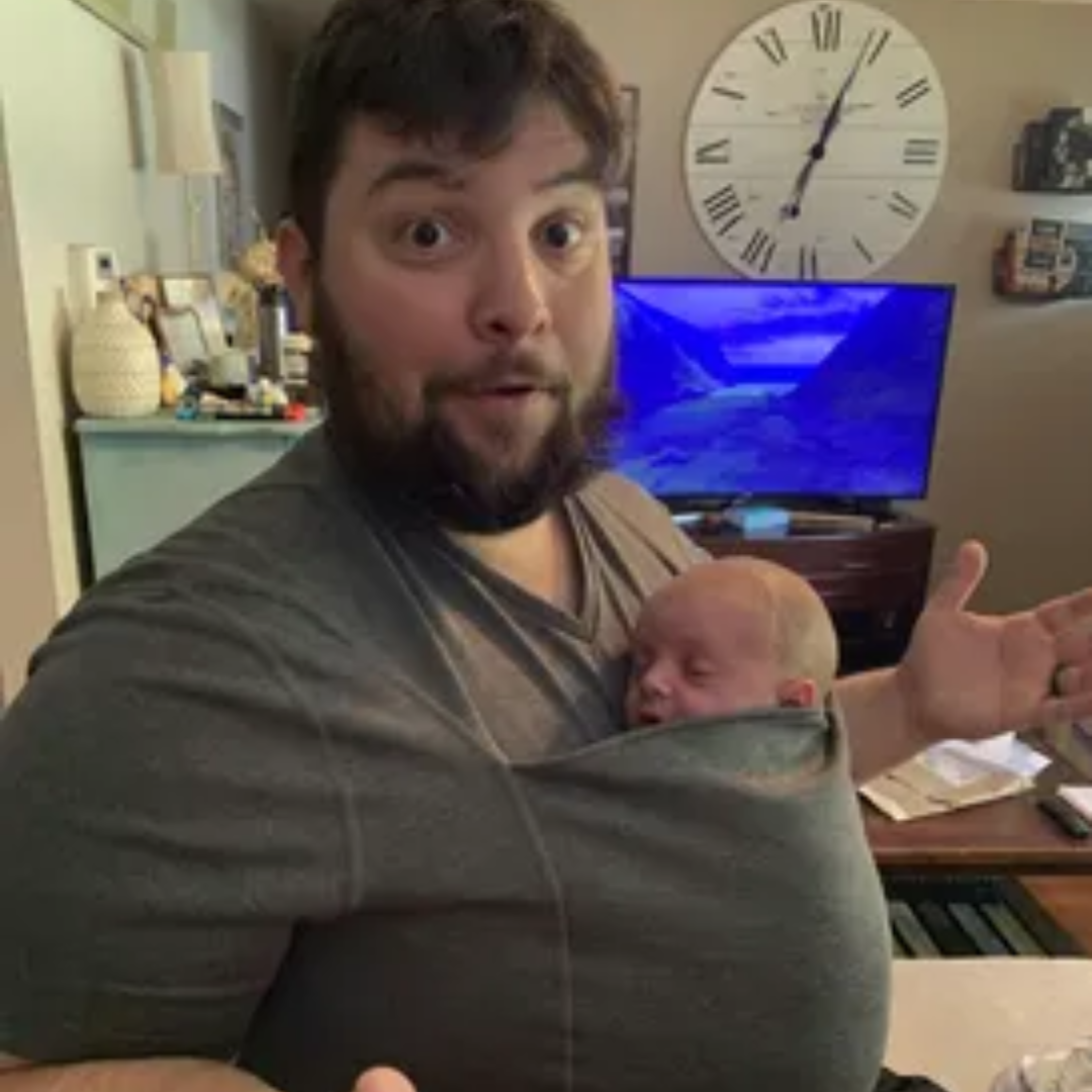 Stay stylish and hands-free with the Kangaroo Pocket T-Shirt a sleek, comfortable way to keep your baby close while on the move.